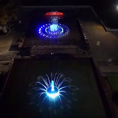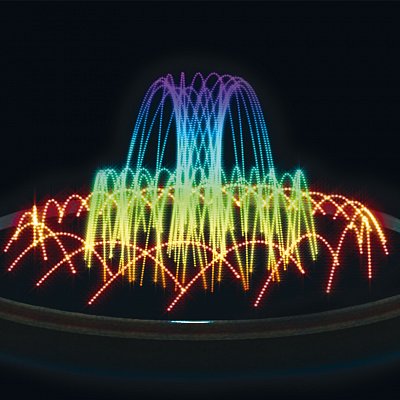 Подсветка водных струй играет важную роль в создании эстетического образа фонтана. Яркая, насыщенная и правильно организованная динамичная подсветка позволяет подчеркнуть всю красоту создаваемых струйных композиций, особенно в вечернее время. Используемые в системе подсветки прожекторы способны создавать множественные сочетания цветов и оттенков (не менее 16 миллионов), и различные варианты световых эффектов, в том числе такие как: «бегущая волна», «радуга», «змейка» и другие, за счет индивидуального управления прожекторами для каждой струи. Ультрасовременные энергосберегающие прожекторы ВСВМ/, разработанные нашей компанией, не требуют водяного охлаждения и имеют круглосуточную возможность работы на воздухе без погружения в воду. Это позволяет использовать штатную систему подсветки фонтана отдельно, например, в зимний период, открывая дополнительные возможности нестандартного благоустройства территорий. Фонтаны малых форм можно укрыть прозрачным прочным материалом и подсветить их по всей плоскости чаши. Фонтаны со скульптурными композициями, похоже, просто созданы для того, чтобы быть подсвеченными зимой. Игровые фонтаны идеальны для размещения на них ледяных фигур, которые будут переливаться яркими цветами изнутри.