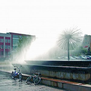 Тонкие струи подвержены боковому сносу за пределы чаши фонтана даже при слабом ветре. Гидропластический рисунок нарушается, фонтан требует постоянного долива воды.